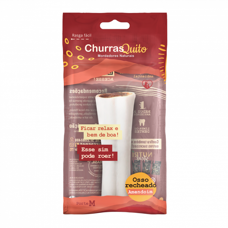 O osso recheado sabor AMENDOIM é a novidade em petisco maravilhosamente deliciosa que o cão precisa depois de uma brincadeira!